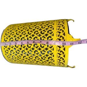 Vintage Hollywood Regency Yellow Filigree Waste Trash Basket Can W/ Liner