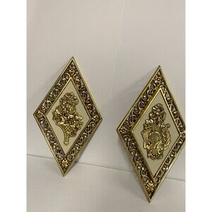 Vintage Hollywood Regency diamond shape wall decor set 2 Dart Syroco