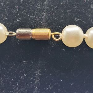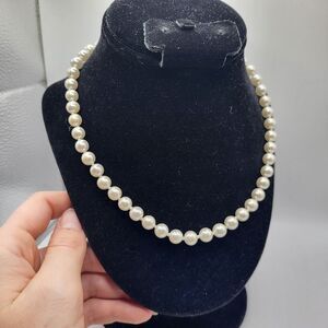 Vintage Hollywood Glam Simulated Pearl Choker Collar Necklace 18in | Materials: simulated pearls | Length: 18in | Clasp: barrel clasp | Signed? no | Excellent vintage condition
