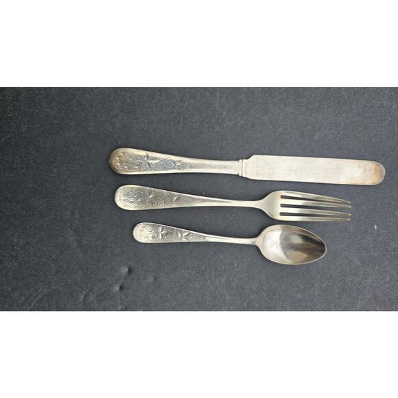 Condition: Fair vintage condition - moderate tarnish and wear, surface scratches and spots as shown in photos. All items show visible aging and patina due to age. No bends or cracks. Please see all photos for close-up condition details.