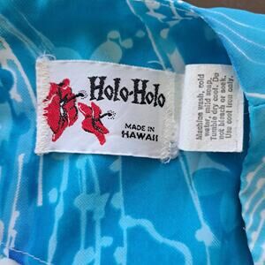 Vintage Holo-Holo Hawaiian Maxi Dress in lovely turquoise blue & white floral hibiscus & plumeria print
