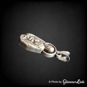 The pendant measures approximately 1" long and 7/16" wide with a sturdy bail.