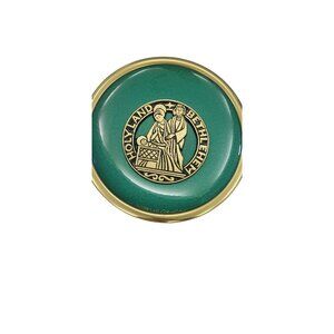 A stunning vintage wall plate depicting the Holy Land and Bethlehem, adorned with intricate gold detailing. A perfect addition to any religious or historical collection.