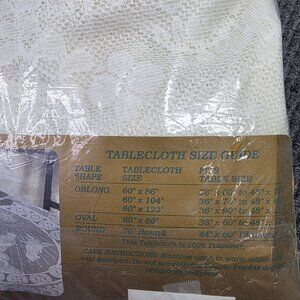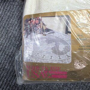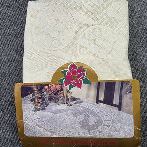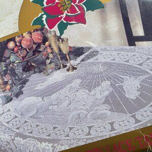 Vintage Holy Nativity Beige White Lace Tablecloth Oval 60 x 86 Angels Christmas