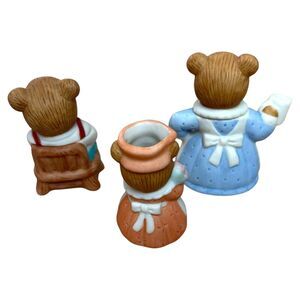 Bring a warm cup of nostalgia to your shelf with this Homco “The Bear Essentials” Miniature Tea Set (No Cups)! 🐻☕ This adorable trio includes Mama Bear, Papa Bear, and Baby Bear figurines dressed in pastel attire, ready for their tea party—just missing the teeny-tiny cups!