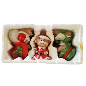 Vintage Homco Christmas Bears (3) Figurines Bisque Porcelain 5600 Home Interiors