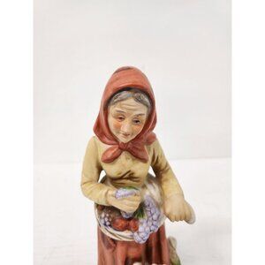 Vintage Homco Farm Woman with Grapes and Dog Large Porcelain Figurine #1417