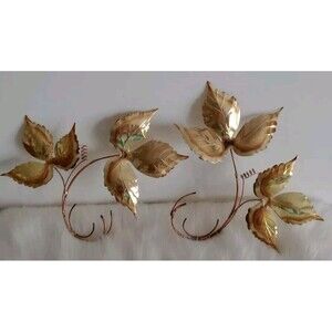 Vintage Homeco gold brass leaves wall decor. Set of two. 1970's era. Approximately 7" X 8". Good pre-owned condition.