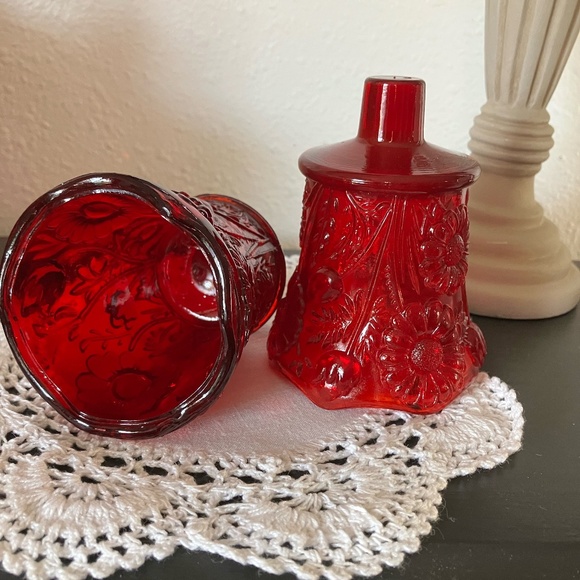 Vintage Homco Home Interiors Ruby Red Glass Daisy Peg Votive Cups (2)
