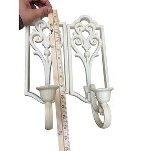 Vintage Homco Ivory Wall Candle Sconces Pair Baroque Scroll Design Plastic 13"