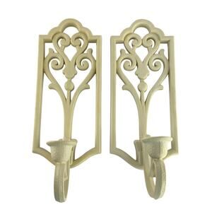 Vintage Homco Ivory Wall Sconces 1982 Plastic Candle Holders Scroll Decor 4229
