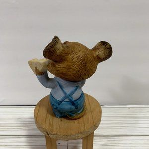 Vintage Homco Kitschy Cute Mouse Wearing Overalls Cheese Sleepy Eyes Figurine