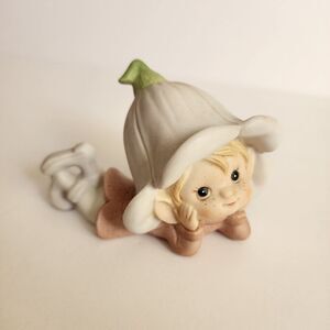 Vintage Homco Set of 3 Ceramic Pixie Elves, tallest is 4"and the one laying down has a chip on her hat.