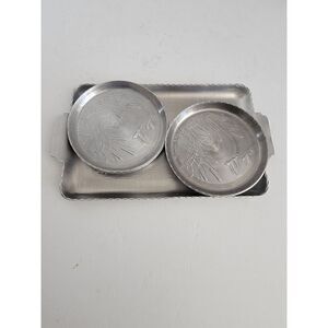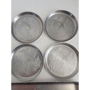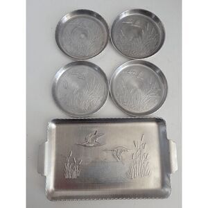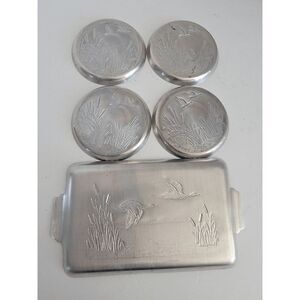 Vintage Home Aluminum Duck Scene Bar Tray And Coasters Set 1 Tray 4 Coasters