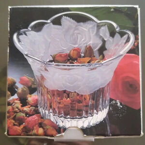 Vintage Home Beautiful Rose Pearls Frosted Glass Votive/ Potpourri Holder 4.5"