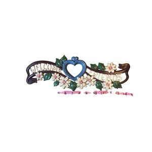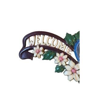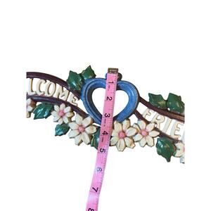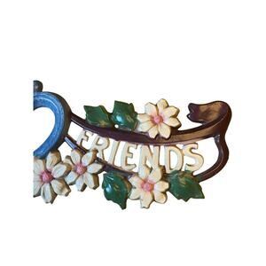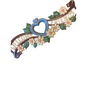 Vintage classic home interiors welcome friends cast aluminum painted sign. Cast aluminum hook on the back. All you need is a little nail to hang this on.