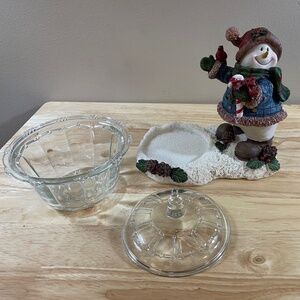 Vintage Home Interiors 2003 Snowman with Candy Dish Bowl