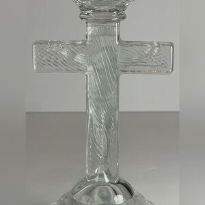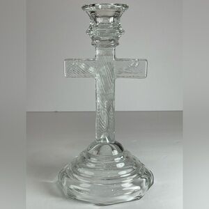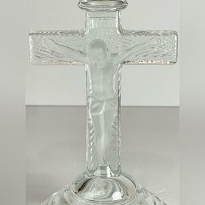 This is a beautiful vintage Home Interiors glass crucifix taper candle holder. Features frosted and embossed glass. Candle holder is in great vintage condition. No chips or cracks noted. Measurements included in photos.