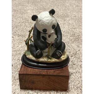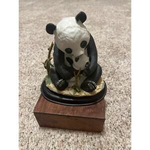 Vintage 1988 Home Interiors Homco Masterpiece Porcelain Panda & Baby Bear Cub Held By Mamma Panda Bamboo