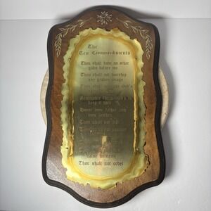 Vintage Home Interiors Homco The Ten Commandments Brass Wood Wall Plaque 10x18