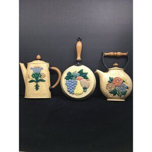 Vintage Home Interiors Kitchen Wall Decor Coffee Pot Kettle Skillet - Set of 3