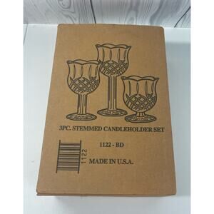 Vintage Home Interiors Set of 3 Tulip Stemmed Glass Candle Holders Clear USA