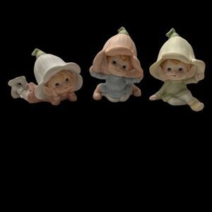 Vintage Homeco #5615 set of 3 elves no chips or cracks EVC