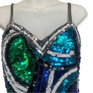 Vintage Homecoming Dress SHO MAX ORIGINALS SILK MULTI COLOR FORMAL SEQUIN