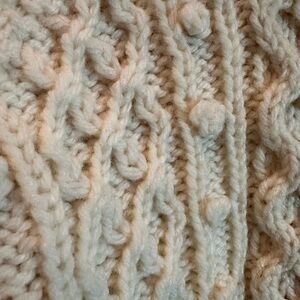 Vintage Homemade Cream Chunky Cable Knit Wool Sweater Adult M(?) Fisherman