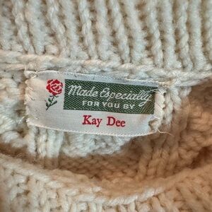 ❌I am not the original owner of this sweater. It is handmade see inside tag...no holes or stains but it does need a good dry cleaning has a slight musty smell from being vintage...if I'm guessing this is probably from the 80s or 90s. It's in excellent condition, doesn't look even worn. Yarn does not feel scratchy to the touch.