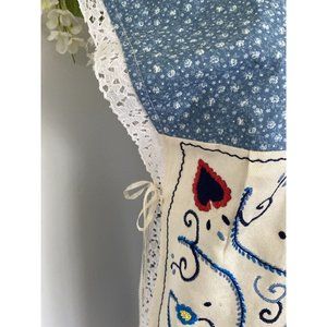 Vintage Homemade Jumper Dress Pinafore Apron 70's Embroidery Calico Farm Cottage
