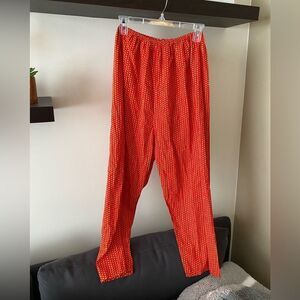 Vintage Homemade Red Flower Pattern Lounge Flowy Pants Size M/L
