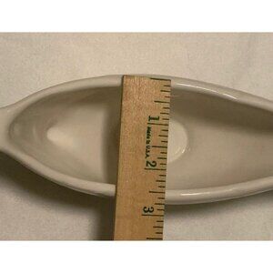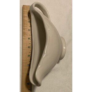 This Homer Laughlin eggshell/ivory gravy boat is elegantly crafted, showcasing timeless design. Its high-quality ceramic material offers durability and a classic aesthetic, making it ideal for serving gravies and sauces with style and sophistication.