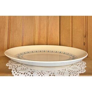 An elegant vintage ceramic serving platter in the Richelieu pattern by Homer Laughlin. Featuring a delicate Fleur de Lis design around the edge.
