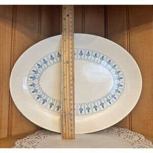 Vintage Homer Laughlin Oval Serving Platter Richelieu Fleur de Lis Blue White