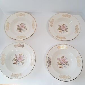 Vintage Homer Laughlin Queen Esther Gold Rim Set of 4 Soup/ Dessert Bowls