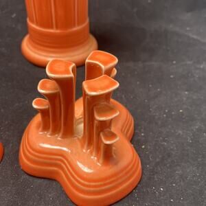 Vintage Homer Laughlin Red Fiesta Persimmons Pair Candle Holders