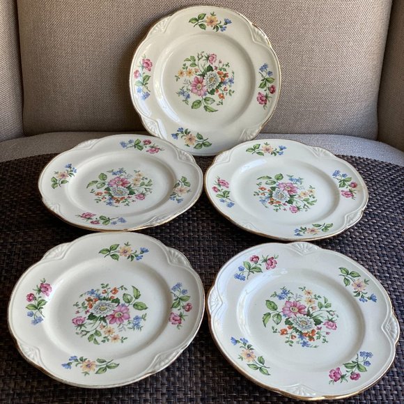 Vintage Homer Laughlin SPRINGTIME, Virginia Rose Shape, Set of 5 Dessert 6 1/2"