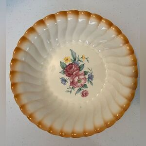 Vintage Homer Laughlin Serving 9" Bowl Pink Victorian Roses orange Swirl Edge