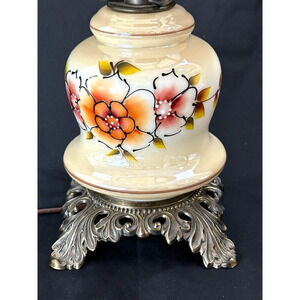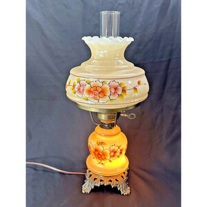 Vintage Honey Iridescent Hand Painted Gone With the Wind Hurricane Lamp 1973