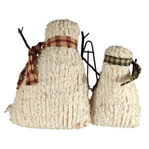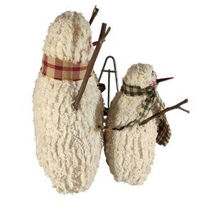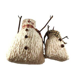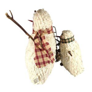 Vintage Honey & Me Cloth Snowman Figurines Set Of 2 W/Plaid Scarves & Twig Arms