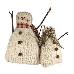 These Honey & Me snowman figurines bring a touch of vintage appeal to any holiday décor. Featuring soft textured bodies, plaid scarves, and twig arms, they capture a rustic winter charm. Their handcrafted look adds a cozy and inviting feel to your seasonal display, making them ideal for festive arrangements.