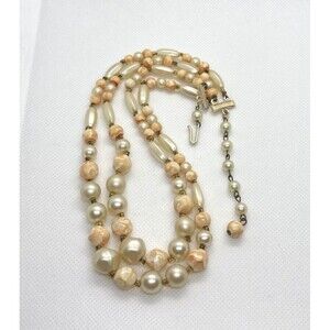 Vintage Hong Kong Beaded 2 Strand Graduated Bead 16-18'' Necklace Cream & Orange