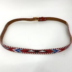 Vintage Hong Kong Native American Beaded Tooled Leather Belt Size 38
