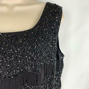 Vintage Hong Kong Top Beaded Fringe Sequin S Gatsby Flapper Black Evening B-38
