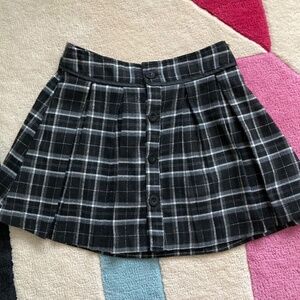 Vintage Honigman Schoolgirl Pleated Black Grey Plaid Button Front Miniskirt XS 0