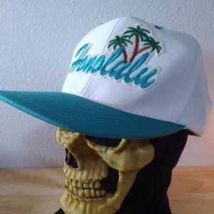 Vintage Honolulu Palm Trees Hawaii Two Tone Snap Back Hat - OSFA - Excellent Condition, No Flaws