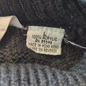Made from soft 100% acrylic and manufactured in Hong Kong, this sweater is a great piece for lovers of vintage knits, cozy winter wear, and unique statement tops. Classic mock neck, ribbed cuffs, and ribbed hem complete the look.