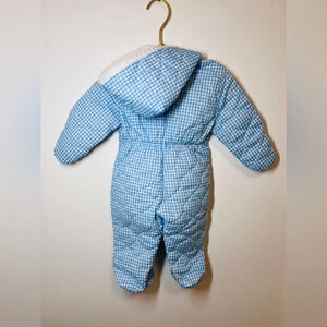 Vintage Hooded Baby Bunting Snowsuit Blue/ White Gingham