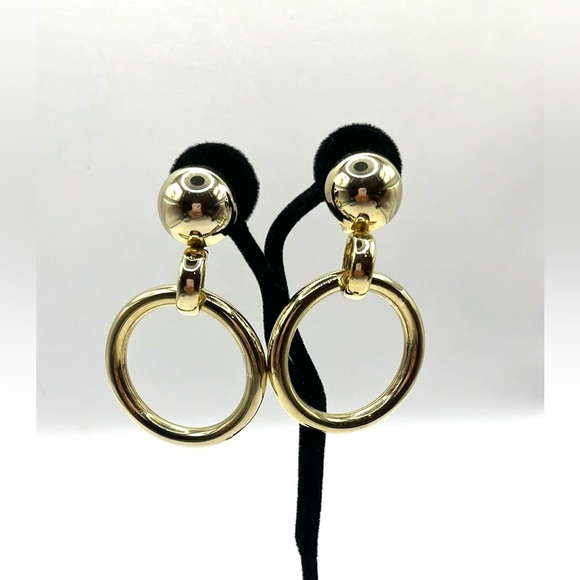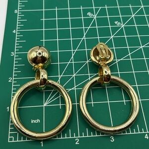Vintage Hoop Clip on Earrings Gold Tone Large Statement 70’s Style
